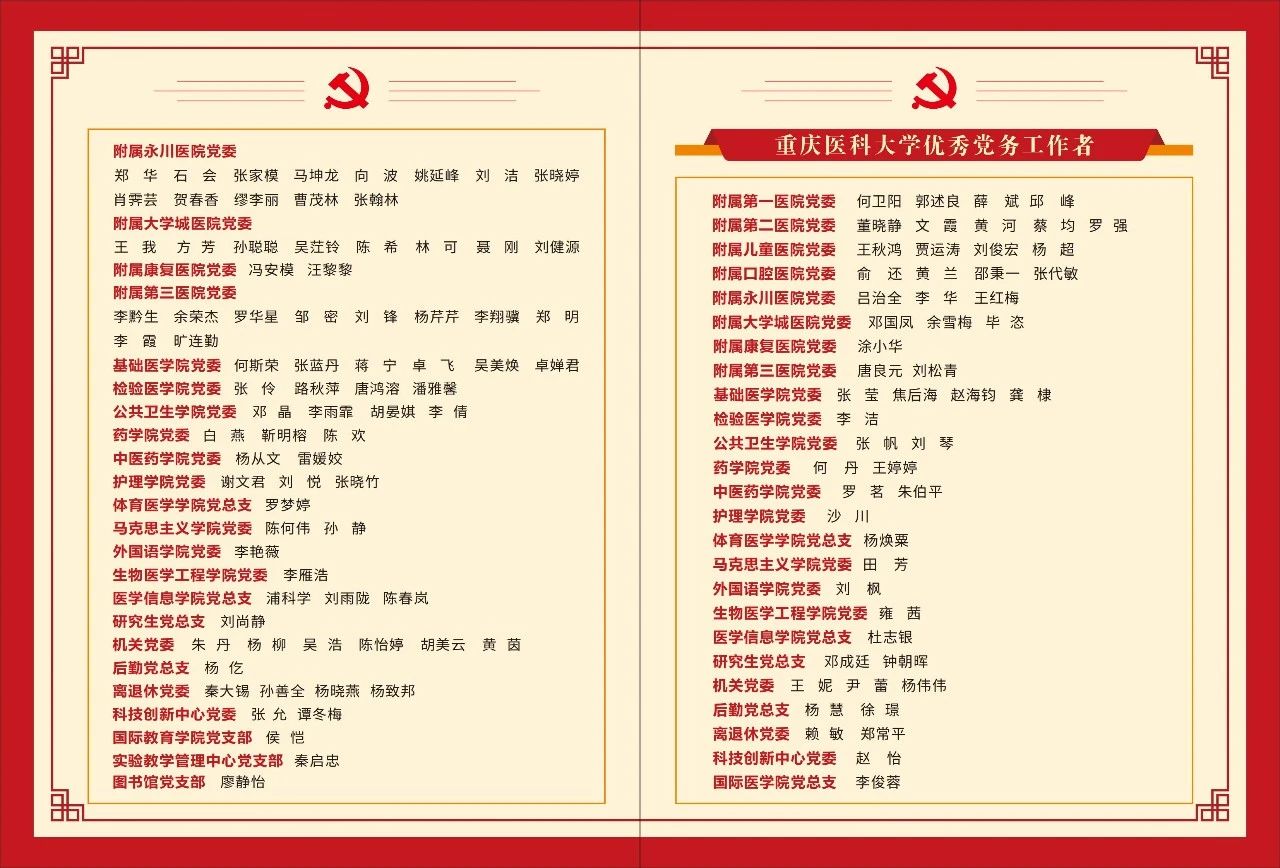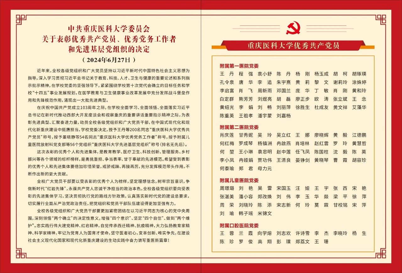 《决定》授予王丹等200名同志“米兰官方端网站优秀共产党员”称号,授予董晓静等54名同志“米兰官方端网站优秀党务工作者”称号,授予附属儿童医院放射科党支部等56个党组织“米兰官方端网站先进基层党组织”称号。与会领导为优秀共产党员、优秀党务工作者以及先进基层组织颁发证书、牌匾。