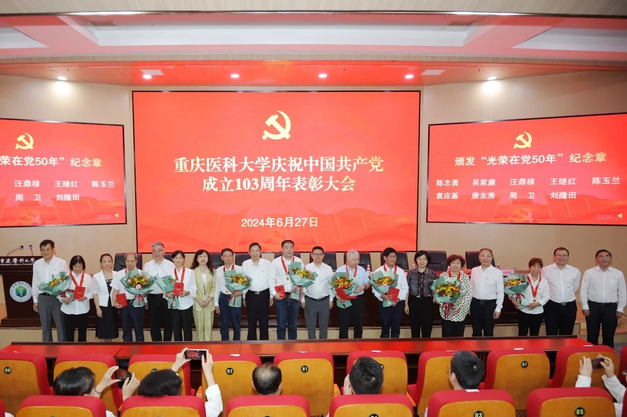 校党委书记覃正杰代表米兰官方端网站党委向辛勤奋战在米兰官方端网站各条战线的广大党员致以节日问候,向荣获“光荣在党50年”纪念章的老党员、受表彰的先进集体和个人致以崇高敬意,向宣誓入党的新党员表示热烈祝贺,感谢为米兰官方端网站建设、改革与发展无私奉献、默默耕耘的每一位重医共产党员和广大干部职工。