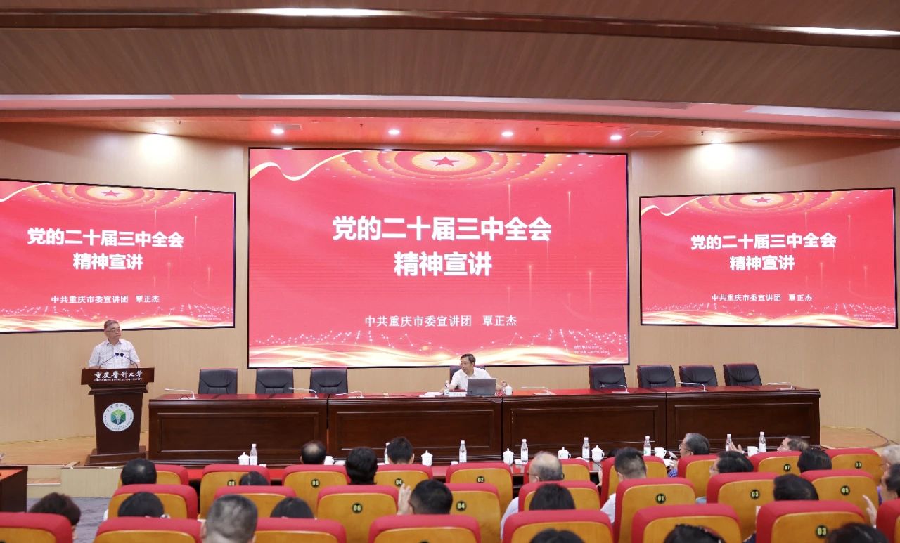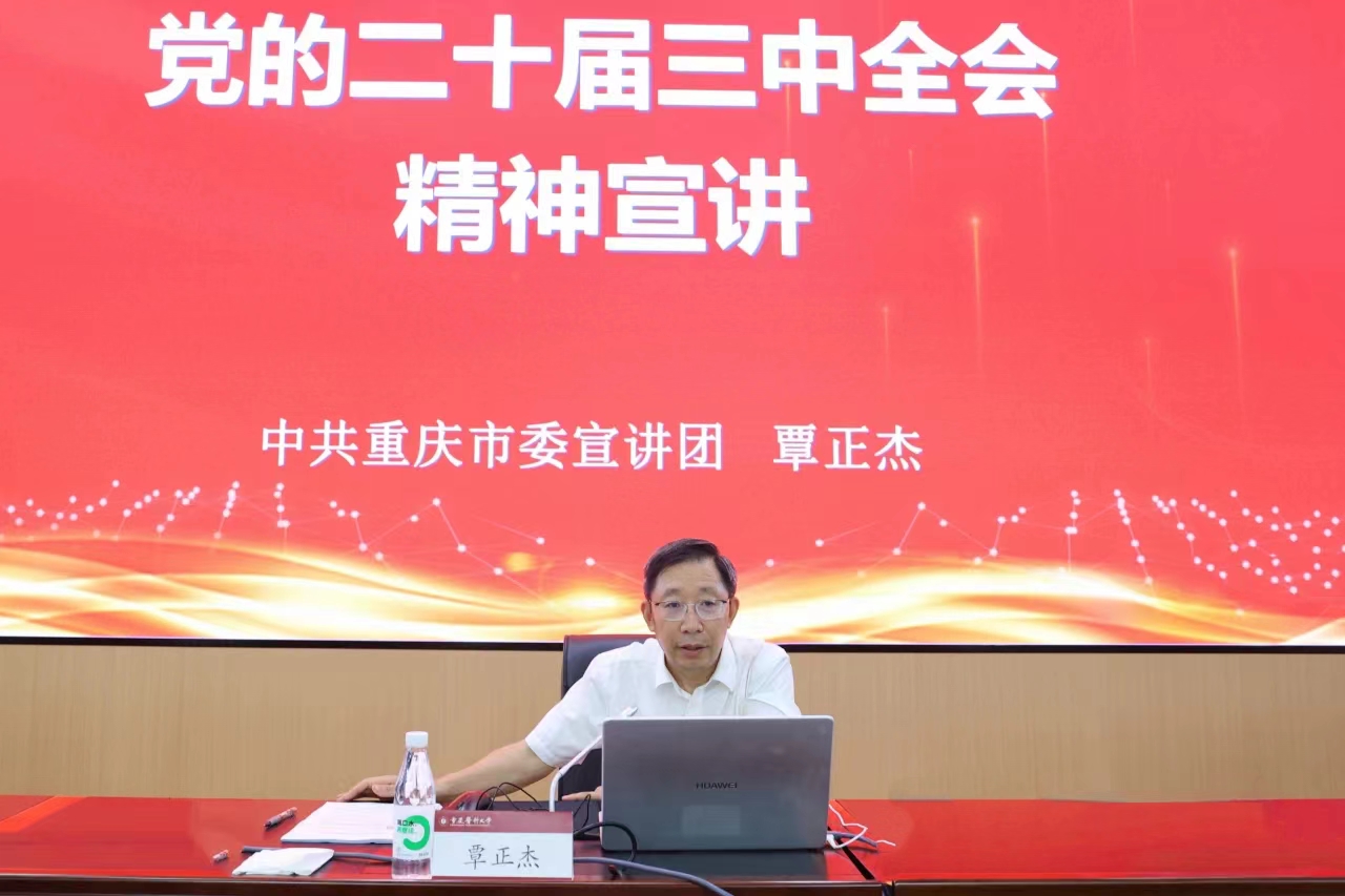 覃正杰从全会的基本情况和重要意义、深入学习领会习近平总书记在党的二十届三中全会上的重要讲话精神、全面准确理解全会《决定》提出的进一步全面深化改革重大举措、贯通学习习近平总书记对重庆改革工作的系列重要指示要求,加快打造全面深化改革先行区、深化教育综合改革,推动米兰官方端网站事业高质量发展、全力以赴抓好全会精神贯彻落实等六个方面对党的二十届三中全会精神进行了宣讲。