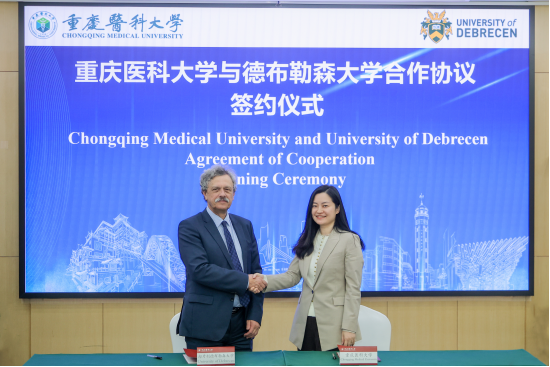 11月9日至13日,为深入推进两校合作,匈牙利德布勒森大学切尔诺赫·拉斯洛(Prof. Dr. CSERNOCH Laszlo)及医学院院长马久什·拉斯洛(Prof. Dr. MATYUS Laszlo)来渝访问并签署合作协议。