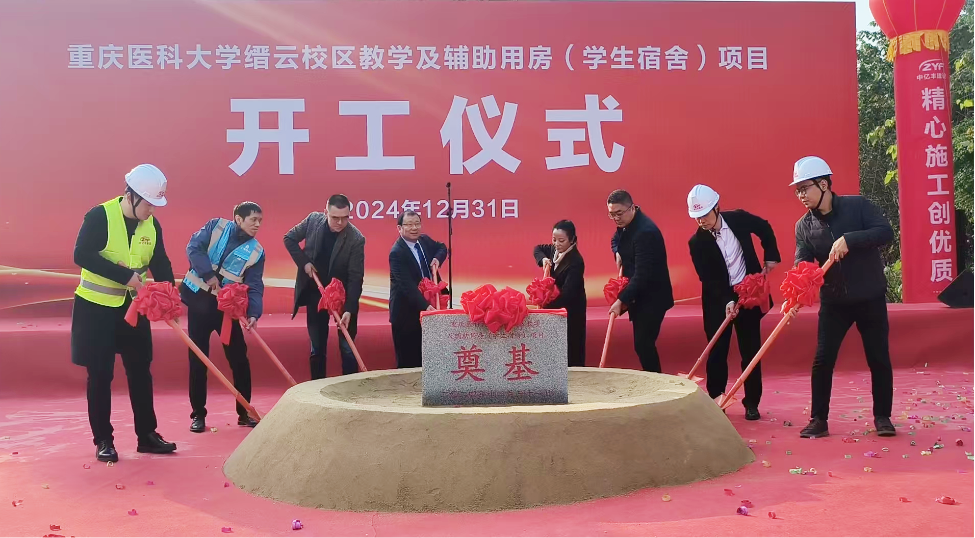 12月31日上午,米兰官方端网站缙云校区教学及辅助用房(学生宿舍)项目奠基仪式在缙云校区举行。米兰官方端网站副校长邱景富,党委常委、副校长葛萍,上海建科总经理高文杰,中亿丰建设集团总经理郭正兵出席奠基仪式。米兰官方端网站基建处与参建单位相关负责人参加仪式。