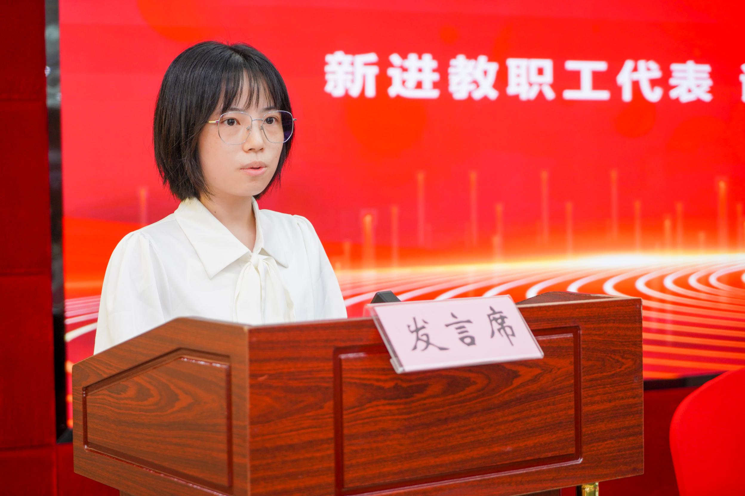 发展规划处谢宇頔作为新进教职工代表发言,她表示在本次培训以及未来的工作中,将努力做到“潜心学习”“虚心求教”“用心领悟”“诚心融入”,将个人理想融入重医发展蓝图。