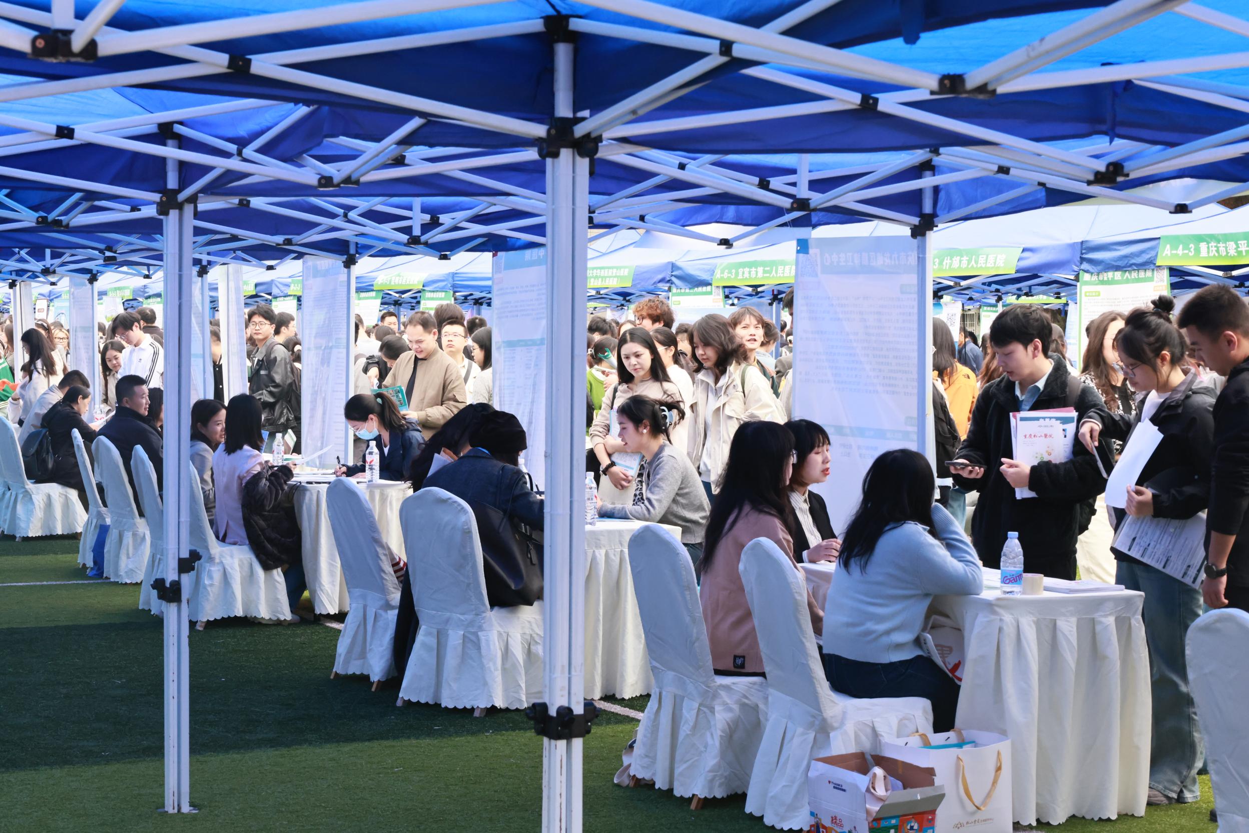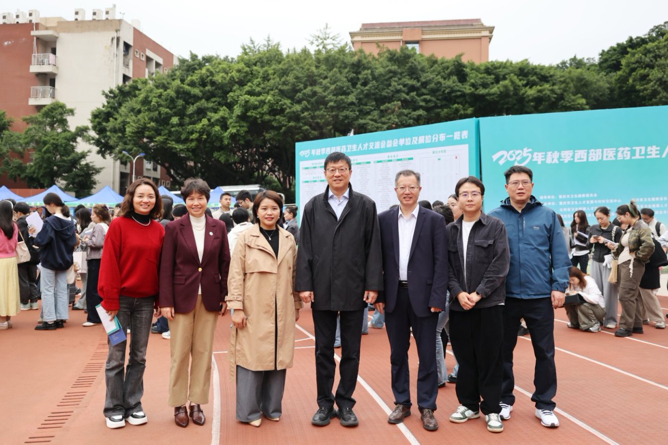 10月24日上午,米兰官方端网站联合重庆市教育委员会、重庆市卫生健康委员会、重庆市卫生人才发展与对外交流中心等单位,在袁家岗校区运动场举办“渝快就・创未来”重庆市2026届普通高校毕业生医药卫生类秋季专场双选活动暨2025年秋季西部医药卫生人才交流会。