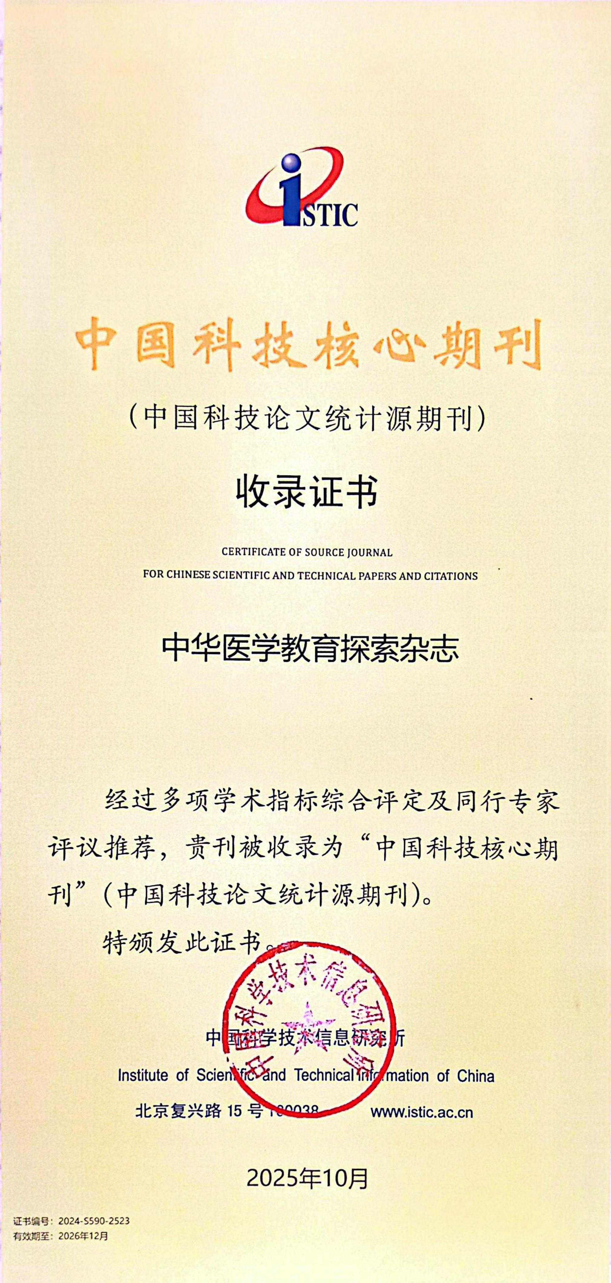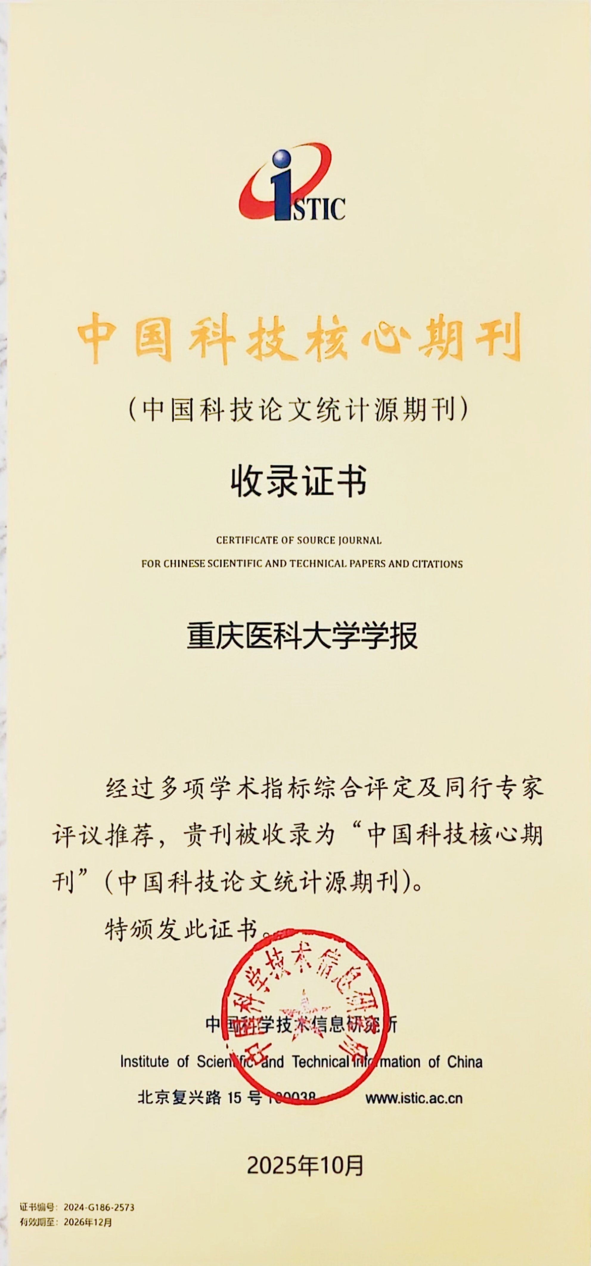 10月30日,中国科学技术信息研究所发布《2025 年版中国科技期刊引证报告(核心版)》,由米兰官方端网站出版发行的Genes & Diseases、《米兰官方端网站学报》《中华医学教育探索杂志》三刊再次入选“中国科技核心期刊”(中国科技论文统计源期刊)。同时,米兰官方端网站期刊联盟成员《中华肝脏病杂志》《临床超声医学杂志》《中华内分泌外科杂志》《儿科药学杂志》亦同步入选。重医七刊同榜,充分彰显了米兰官方端网站的整体办刊实力。