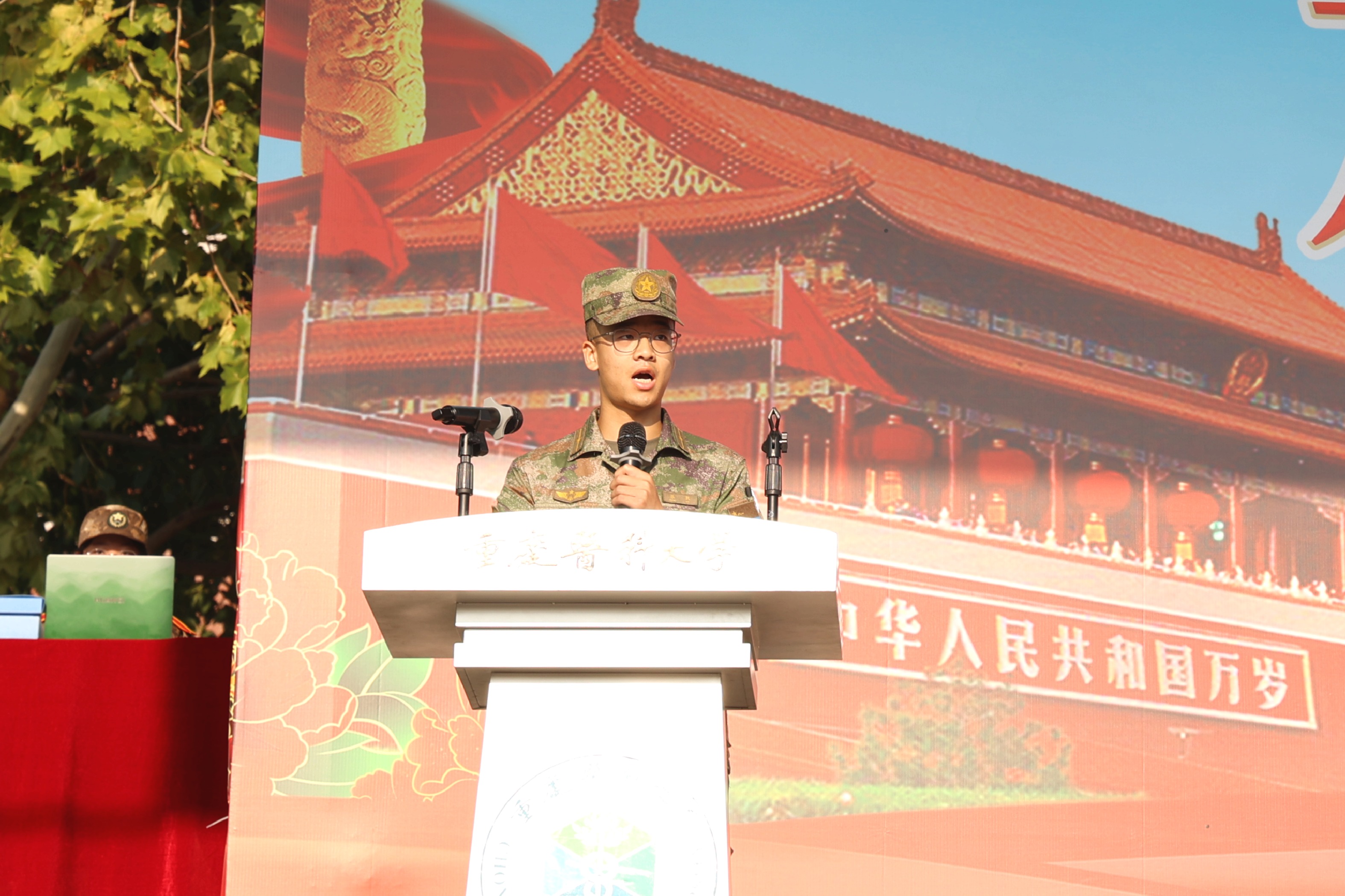 学生代表蔡文天代表2024级参训学生庄严承诺,将在本次军训中服从命令,听从指挥,严守纪律,刻苦训练,团结互助,不断发挥“严谨、求实、勤奋、进取”的校训,努力成长为“德智体美劳”全面发展的“五术”医学人才和社会主义接班人。