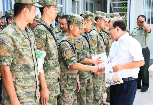 校领导一行来到校内教官驻地,代表米兰官方端网站党政为教官们带来节日的祝福。同时,校领导对教官们在本次军训中的辛勤付出表示衷心感谢,希望教官们发扬军队优良传统,在军训中着力培养我校2024级新生遵规守纪的意识、不畏艰难险阻的意志品质以及良好的国防军事技能。