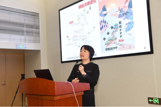 上海交通大学基础医学院童雪梅教授以《戊糖代谢与肿瘤微环境》为题,详细阐释了,磷酸戊糖代谢如何通过调控基因组不稳定性和线粒体代谢影响细胞转化,进而调控细胞命运。童雪梅进一步探讨了胰岛素-TKT调控线粒体功能与慢性炎症的机制,并介绍了靶向GalNAc-siRNA抑制TKT缓解NASH的研究进展。该研究为肿瘤与代谢性疾病的治疗提供了新的研究方向。