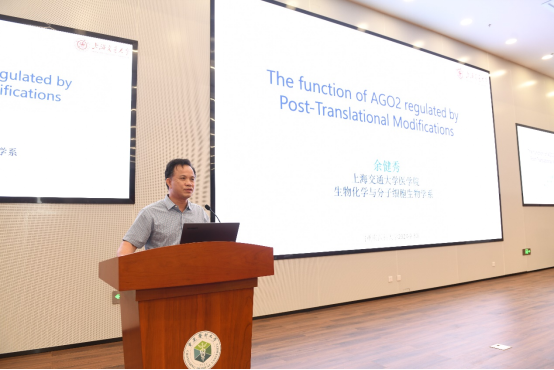 上海交通大学医学院的余健秀教授以《AGO2的蛋白质修饰及其功能》为题,详细介绍了AGO2蛋白在乙酰化、线性泛素化和磷酸化方面的功能变化,具体阐释了乙酰化可以增强AGO2对特定miRNA前体的识别与加工能力;线性泛素化则在低氧条件下发挥作用,调节mRNA的整体稳定性,揭示了肿瘤细胞对低氧的适应机制;磷酸化则通过TBK1的介导,影响肿瘤相关miRNA的装载,进而调节非小细胞肺癌的发展。这些研究成果提供了新的分子机制,为理解和治疗相关疾病开辟了新途径。