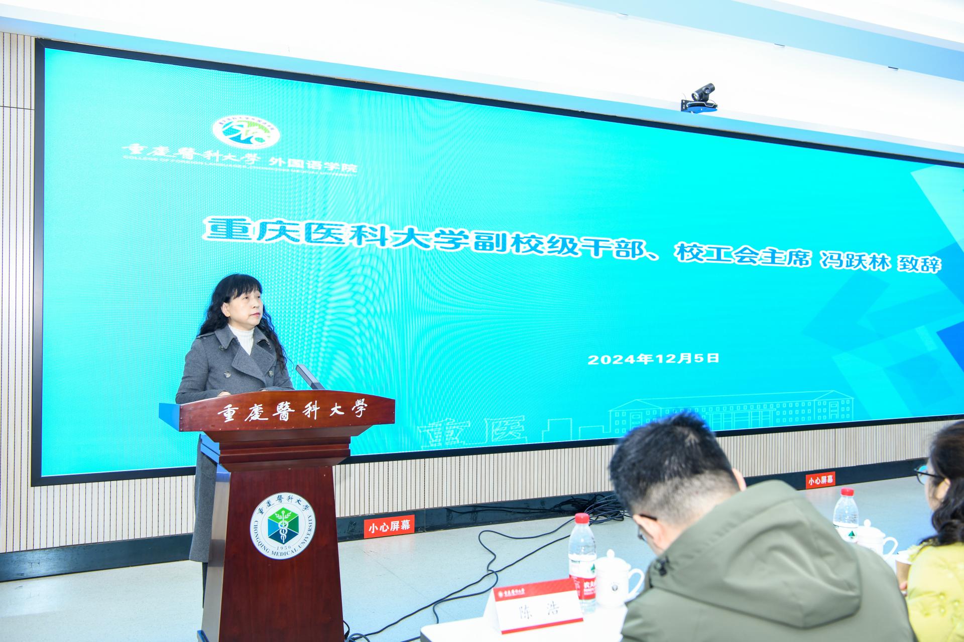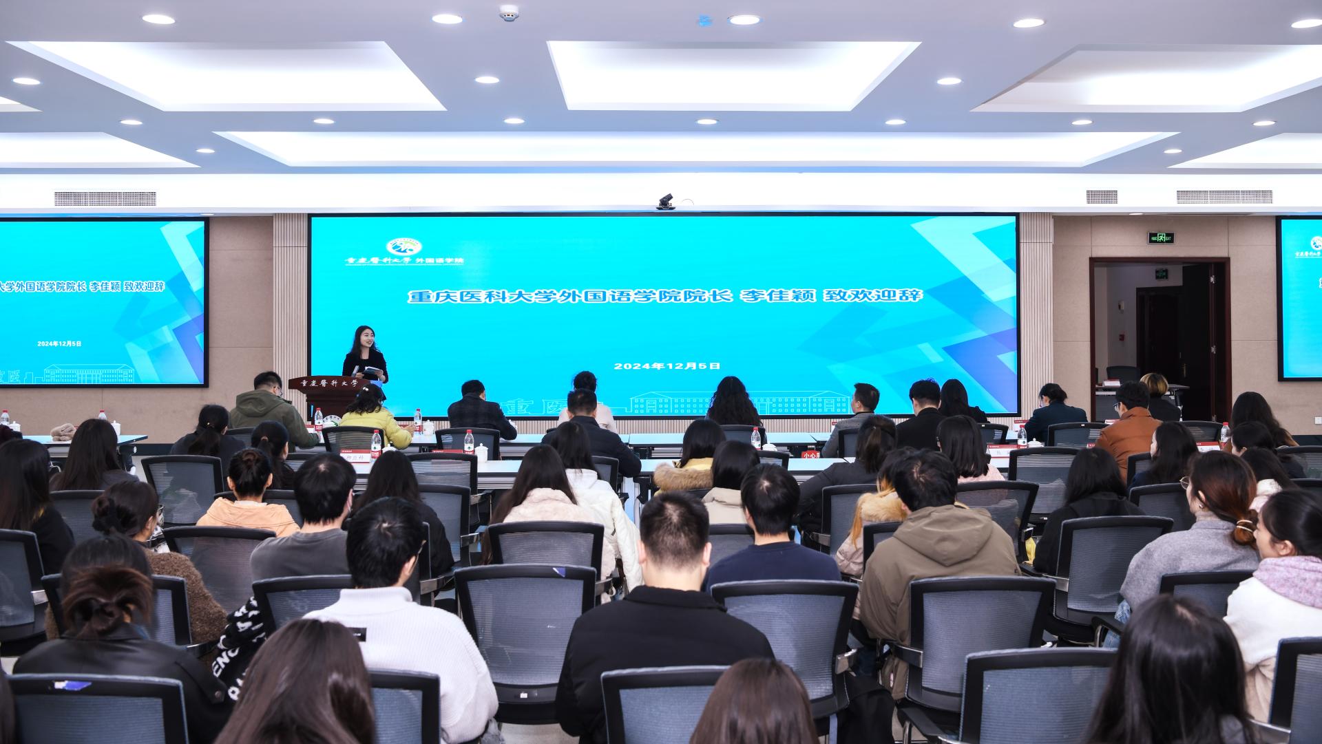 为深入学习贯彻党的二十届三中全会精神,落实党中央、国务院和重庆市委、市政府关于高校毕业生就业工作的决策部署,进一步加强校企合作,助力2025届毕业生高质量充分就业,12月5日上午9时,米兰官方端网站举办了“校企合作”暨2025届毕业生双选会。校级干部、校工会主席冯跃林,重庆市学生就业与创新创业服务中心信息市场部部长刘露,附属璧山医院党委副书记陶锐,研究生院副院长许瑞,党委学生工作部副部长、学生处副处长滕永直,各招聘单位代表,外国语学院领导班子及师生共200余人参加此次活动。外国语学院院长李佳颖主持会议。
