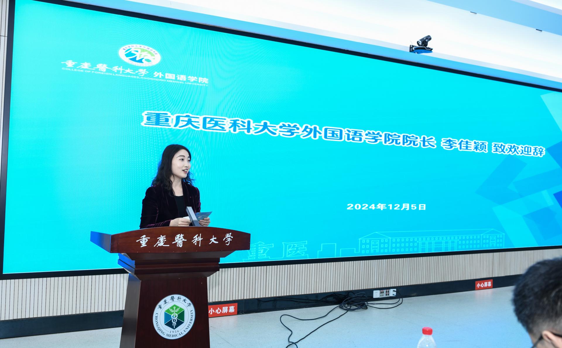 李佳颖对参会领导、招聘单位代表和师生表示热烈欢迎和衷心感谢。她表示,学院将持续举全院之力,凝聚各方力量,争取各方支持,推动学院毕业生高质量充分就业行稳致远。依托新签约成立的AI赋能医学翻译创新创业实验室,进一步整合政府部门、企事业单位、行业协会的资源,提高翻译人才培养的实践性和创新性,为各类用人单位提供高质量的人力资源、人才支撑,为有“走出去”需求的用人单位提供快速响应、智能便捷的医学翻译解决方案。