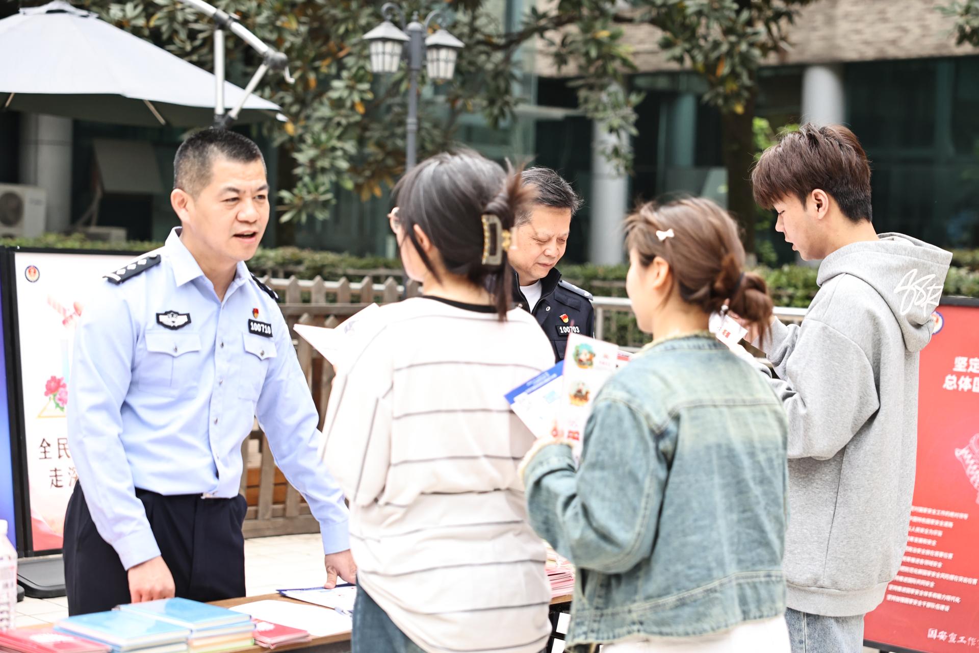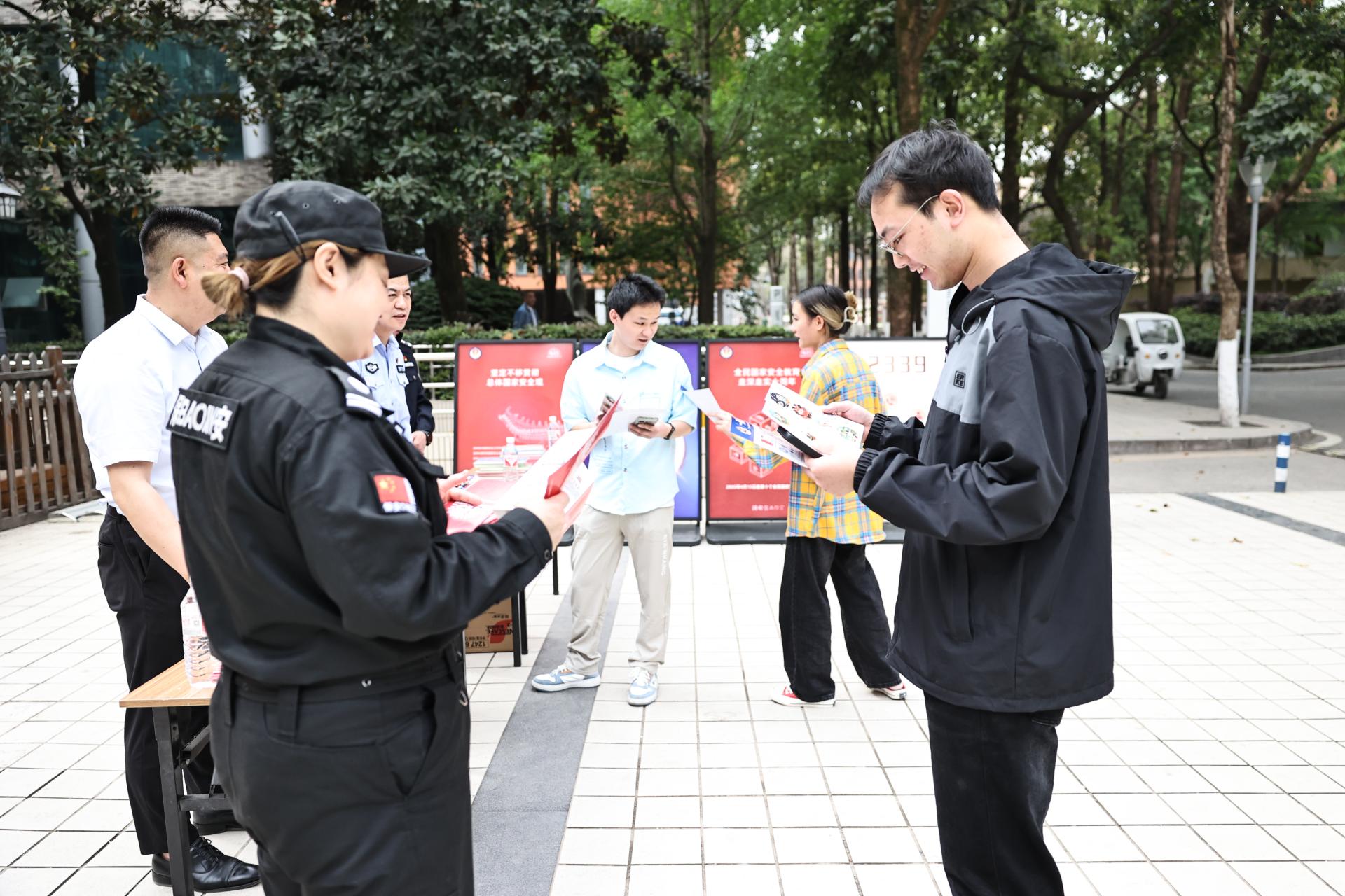 米兰官方端网站携手渝中区国安办、渝中区公安分局、医学院路派出所围绕“全面国家安全教育,走深走实十周年”主题,在袁家岗校区开展全民国家安全教育日主题活动。在活动现场警官们通过展示宣传海报,分发宣传画册,讲故事、举事例等多种宣传方式,以“全面国家安全教育,走深走实十周年”为主题,将国家安全知识的基本内容进行了深入细致的现场讲解。同学们认真听、仔细记,主动参与互动交流,进一步了解了国家安全的定义与内涵,引导师生领会总体国家安全观的内涵和精神实质。
