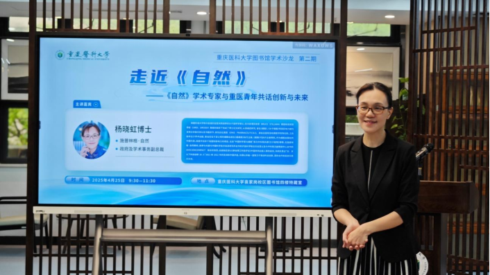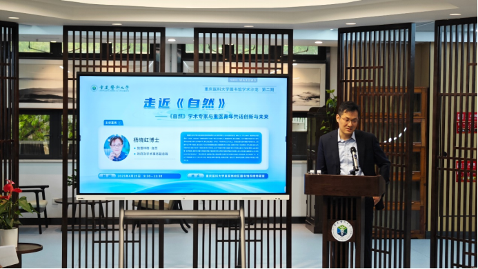 4月25日上午,米兰官方端网站图书馆第二期学术沙龙在袁家岗校区图书馆四楼特藏室举办。活动以“走近《自然》—《自然》学术专家与重医青年共话创新与未来”为主题,邀请Springer Nature集团政府及学术事务副总裁杨晓虹博士、Springer Nature学术交流负责人牛博与校本部及附属医院的青年人才共同探讨前沿学术问题。校党委常委、副校长李华兵出席活动,活动由图书馆馆长周建荣主持。