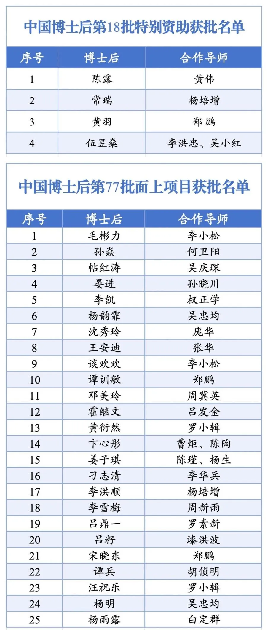 近日,中国博士后科学基金会发布了第18批中国博士后科学基金特别资助、第77批中国博士后科学基金面上项目(含地区专项)获资助人员名单。附属第一医院获批4项中国博士后科学基金特别资助、25项面上项目(含地区专项)。