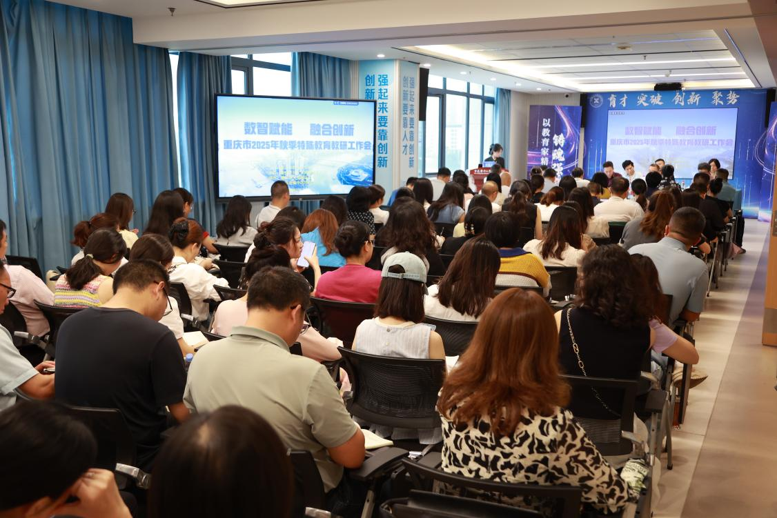 近日,重庆市2025年秋季学期特殊教育教研工作会在附属康复医院大渡口院区召开。会议由重庆市教育科学研究院主办、附属康复医院承办,以“数字化赋能特殊教育教学能力提升”为主题,全市特殊教育专家、教研员及米兰官方端网站代表近百人参会。市教科院基础教育研究所、市残联、大渡口区残联、大渡口区教师进修学院等单位领导出席会议。