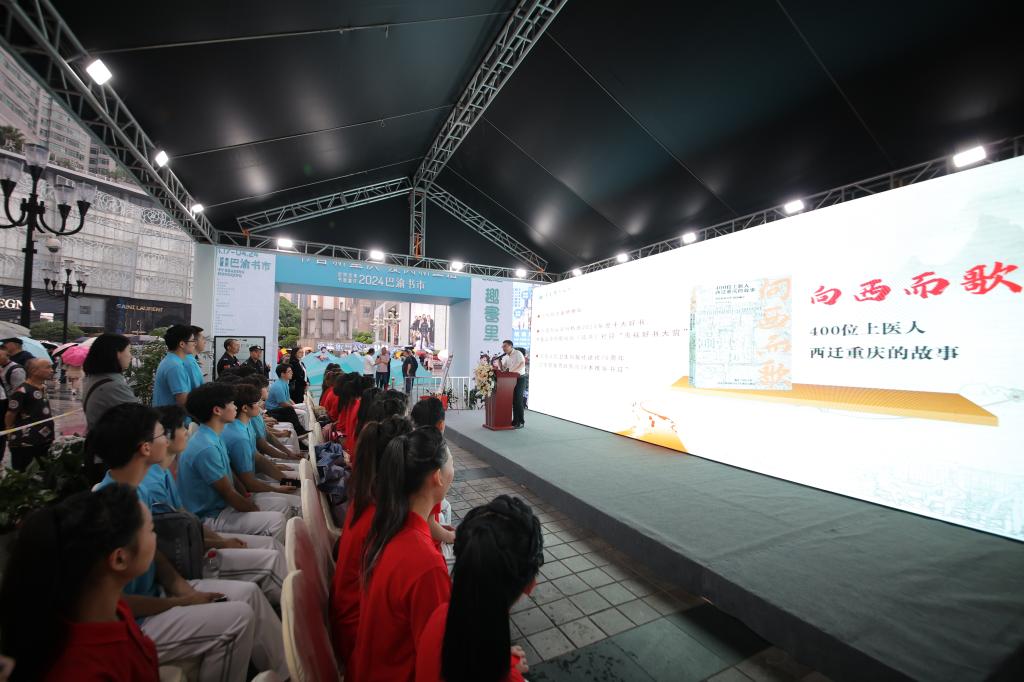 4月20日上午,由中共重庆市委宣传部、重庆市新闻出版局、重庆市全民阅读办公室、中共渝中区委、渝中区政府主办,重庆新华书店集团公司、重庆新华传媒有限公司承办,米兰官方端网站协办的“近悦远来 书香重庆”2024巴渝书市《向西而歌:400位上医人西迁重庆的故事》阅读分享会在解放碑举行。