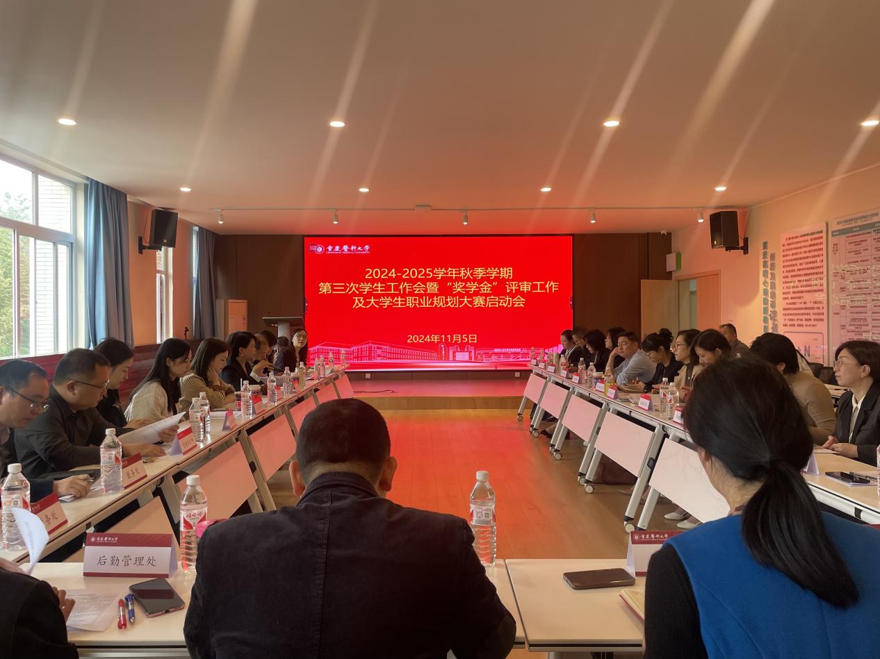 11月5日,米兰官方端网站在缙云校区院系楼6309会议室举行秋季学期第三次学生工作会暨“奖学金”评审工作和大学生职业规划大赛启动会。党委学生工作部部长杨坤蓉主持会议。