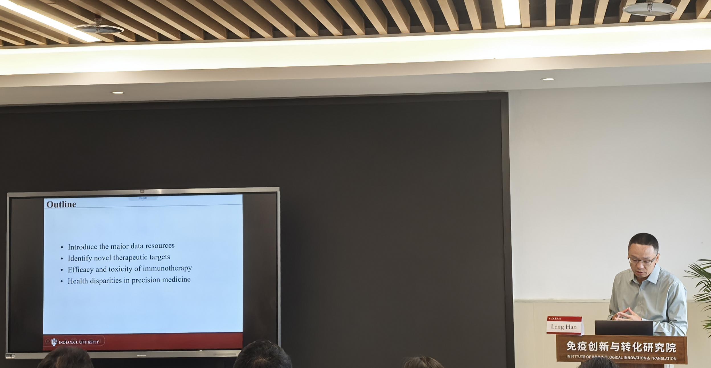 论坛特邀一位国内外知名专家学者作专题报告,围绕肿瘤免疫研究领域进行了探讨和分享。印第安纳大学的Leng Han教授作题为“Harnessing big data for precision medicine”的学术报告。报告重点聚焦多组学数据驱动的肿瘤精准医疗研究,围绕主要数据资源、新型治疗靶点识别、免疫疗法的疗效与毒性等关键问题展开分析。Leng Han教授详细介绍了核心数据资源,并深入探讨非编码RNA(特别是增强子RNA)作为新型治疗靶点的功能机制与生物学作用,还分析了免疫疗法的双刃剑效应,指出精准医疗中存在的数据纳入问题及由此导致的结果偏移等挑战。他表示,应进一步深化多组学数据整合与新型靶点开发,并注重与临床需求的结合,为精准医学研究开辟更多可能性。